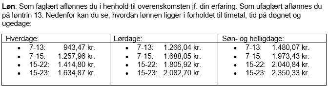 Din arbejdstid vil ligge på alle ugens 7 dage mellem kl. 7.00 og 23.00. Vagterne er primært af 6, 7 eller 8 timers varighed.